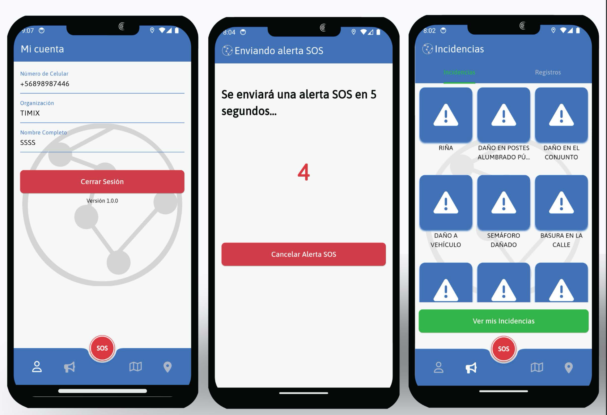 Dashboard con incidencias cercanas a la ubicación del usuario con información relevante al caso.